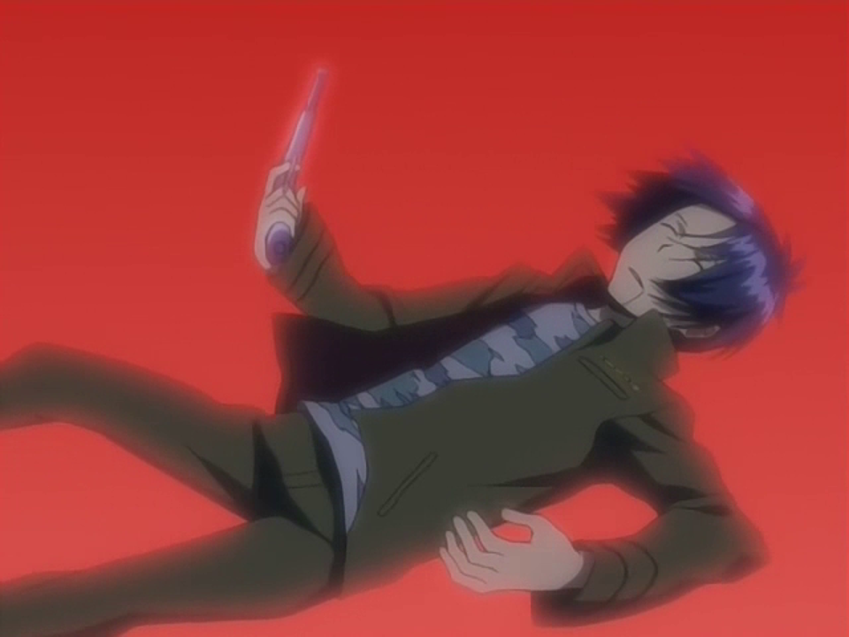 Mukuro explains that he had used one of the Six Paths of Reincarnation and demonstrated it again by leaving Bianchi's body. Gokudera then stood up and offered Tsuna his help but then Tsuna realized that Gokudera also had been possessed by Mukuro as he is nearly stabbed by the trident. Mukuro shows surprise as it was the first time someone saw through his possessions. Reborn remembered the gun that Mukuro used and concluded that Mukuro was using a forbidden bullet, the Possession Bullet, that was created by the Estraneo Family, and he asks how he had it because the information on its creation was destroyed. Mukuro simply replied because it belonged to him as he continued to attack Tsuna with Ken and Chikusa, both of whom are also possessed by Mukuro.