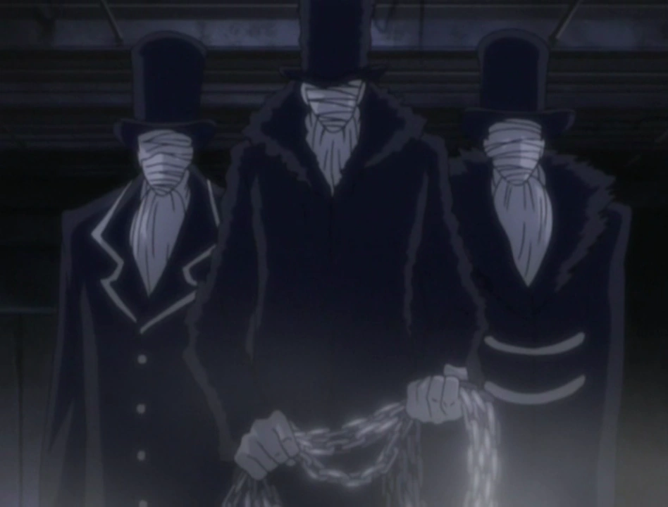 Suddenly, three men in black and bandages appear and chain Mukuro, Ken, and Chikusa. Reborn recognizes them as the protector of mafia law, Vindice. As the Vindice begin to drag Mukuro and his subordinates, Tsuna asks what they will do to them. Reborn says that they will be heavily punished, including the other convict who is still alive and Lancia and he also warn Tsuna not to get in trouble with them. After Vindice disappears along with the Kokuyo gang, the medical team arrives and immediately treats Gokudera and the others who were unconscious and wounded. Tsuna then feels a sudden pain throughout his body, which turns out to be the after effect of the Rebuke bullet and faints in exhaustion, followed by Reborn who decides to sleep after he praises Tsuna for being able to accomplish the ninth's order.