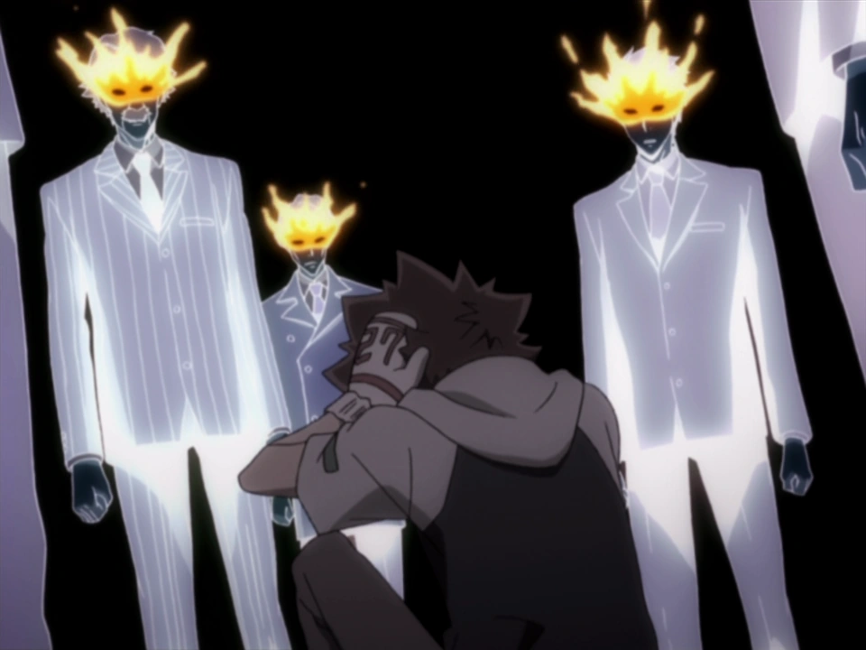 Between the eight bosses is the crest of Vongola, and after Primo accepts his long-awaited successor's resolve, all of the former bosses strengthen their flames and the symbol glows. As each boss turns to flame in another circle, Primo bids Tsuna farewell as the boy is consumed by the light, later to break out of Roll's sphere successfully.